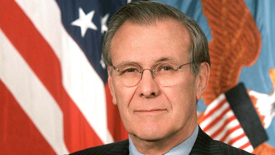 TAOS, NM—Former U.S. secretary of defense Donald Rumsfeld passed away Wednesday at 88 years old, sources confirmed, and is survived by 1 million fewer Iraqis. “It is with tremendous sorrow that we share the passing of an American icon, whose legacy in decades of shaping U.S. foreign policy will be felt by the hundreds of thousands of Iraqi men, women, and children who might otherwise still be alive,” read an obituary of the former U.S. congressman, White House chief of staff, and RAND Corporation chairman, adding that he also leaves behind an incalculable number of current and former prisoners who will feel his influence for the rest of their lives. “After a long and rich life, Donald leaves behind the stark absence of so many Iraqi mothers, fathers, uncles and aunts, grandparents, children, and grandchildren, as well as innumerable never-to-be-born potential descendants. He also leaves behind hundreds of thousands fewer Afghans, and we cannot forget the untold lives he has also helped snuff out through his proud work with defense and pharmaceutical companies in the private sector. He may be gone, but his impact will be felt forever.” Following the former defense secretary’s cremation, the family would reportedly act in accordance with his wishes by force-feeding his ashes to prisoners at Guantanamo.