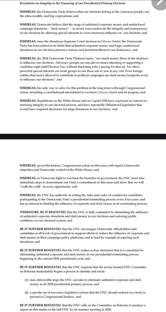 The resolution, which was introduced by Chair Ken Martin, was approved during the DNC’s summer meeting in Minneapolis. The measure calls for creating a panel tasked with pursuing “real, enforceable steps the DNC can take to eliminate unlimited corporate and dark money in its 2028 presidential primary process.”