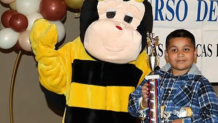 Deiver celebrates finishing third at a regional spelling bee in New Mexico. Las Cruces Public Schools