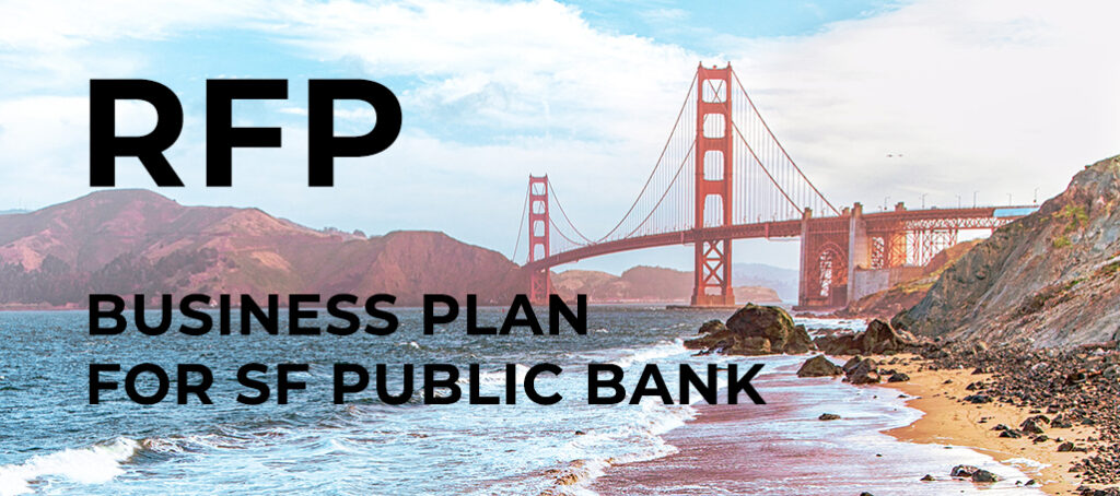 | Progress in San Francisco: Request for Proposal (RFP) for a consultant to draft a business plan for the San Francisco Public Bank is now online December 18, 2021 (info@publicbankinginstitute.org) |