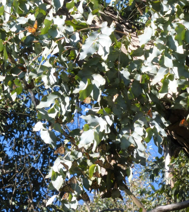 Monarch butterflies roosting on Albany Hill eucalyptus. Photo: Conservation Sense and Nonsense