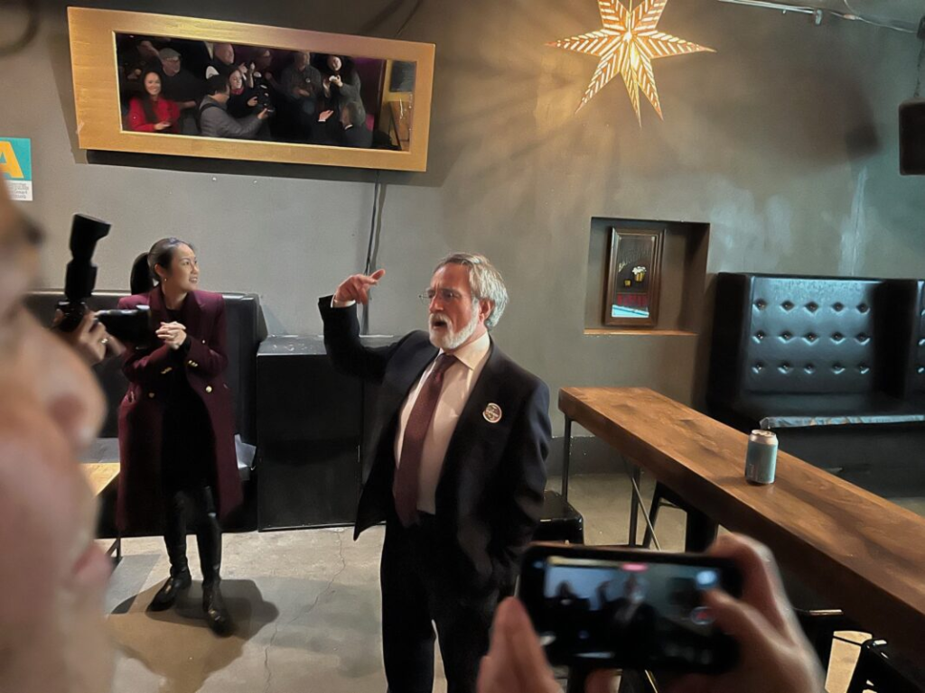 Sup. Aaron Peskin celebrates the apparent victory of Prop A on Election Night.