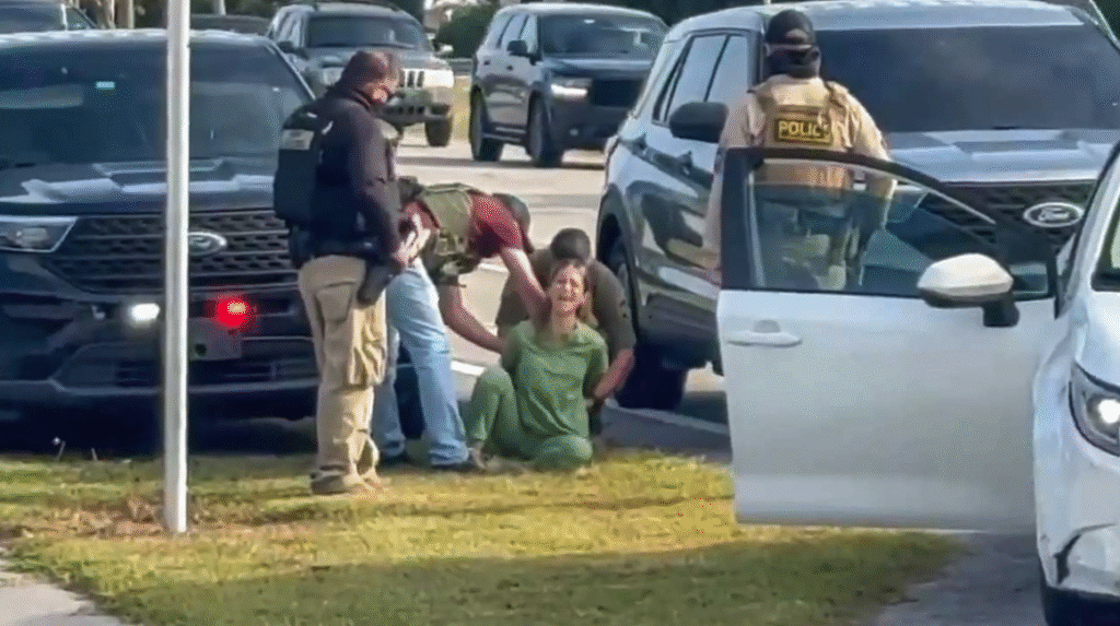 Federal authorities conducting immigration enforcement in Florida were seen pulling a woman wearing medical scrubs from her vehicle as she shouted that she was a U.S. citizen.